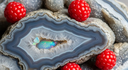 Close-up view of a stunning natural agate stone showcasing layered patterns and vibrant colors. Perfect for nature-inspired designs or backgrounds.