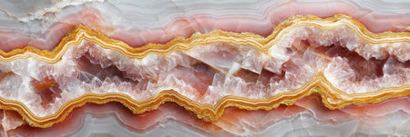 Generative AI, natural volcanic agate stones close-up light pink magenta and golden texture. Wallpaper background, quartz marble, decorative rock pattern