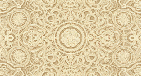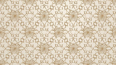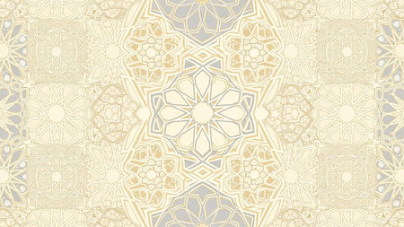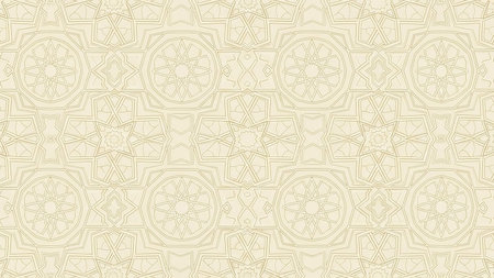 Monochromatic showing traditional islamic geometric pattern with circular and star motifs in a monochromatic pale yellow hue creating a subtle and ornamental...