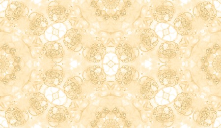 Yellow seamless pattern. Attractive delicate soap bubbles. Lace hand drawn textile ornament. Kaleidoscope mandala lingerie print. Creative abstract watercolor background.