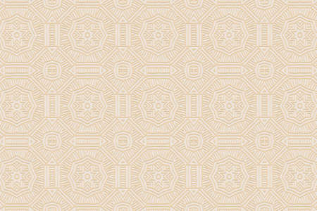 3D volumetric convex embossed geometric beige background. Doodling technique. Ethnic original oriental, asian, indian pattern with handmade elements for design and decoration.