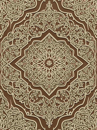 Arabic floral ornament on brown background. 3d rendering. Computer digital drawing.