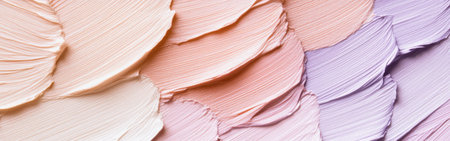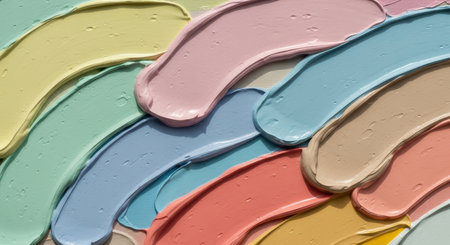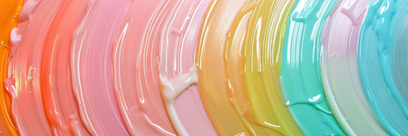 AI Generated. Multicolored liquid foundation texture featuring warm and cool tones in horizontal rows showcasing creamy smooth hues for beauty applications