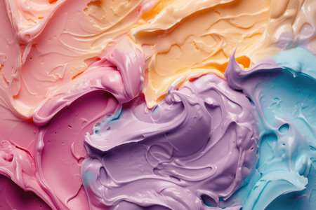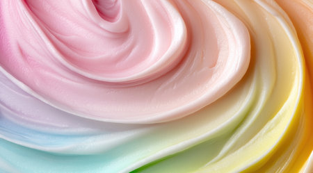 Vibrant swirl of pastel colors in creamy texture and abstract artistic design.