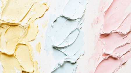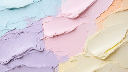 Various soft pastel shades blend together on a textured surface showcasing an abstract art style. The delicate tones evoke a calming ambiance.