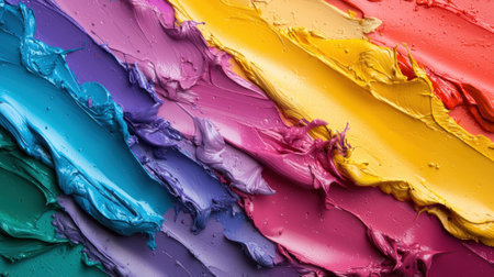 A striking array of thick, textured paint strokes arranged in a rainbow gradient. The colors blend smoothly, creating a visually captivating display of artistic creativity.
