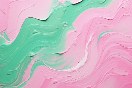 Delicate shades of pastel pink and green create an elegant contrast against a soft white background, showing swirling textures that evoke a sense of calm and gentleness.