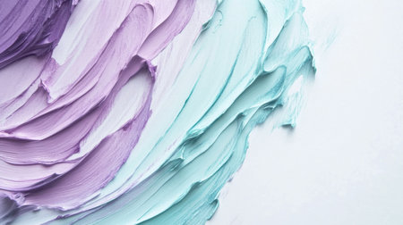 Delicate strokes of pale mint green, lavender, and soft white arrange themselves on a smooth surface, creating a serene ambiance ideal for artistic expression and creativity.