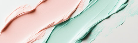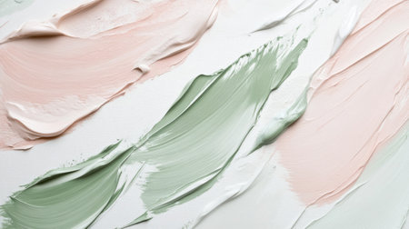 Delicate pastel colors blend seamlessly on a white canvas, featuring smooth strokes of pink and green. This serene backdrop evokes tranquility and elegance in a minimalist setting.