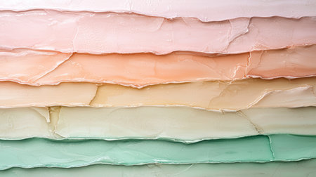 Colorful layers create a minimalist background, featuring torn sections of paint. Soft pastels overlay each other, creating texture and visual interest, ideal for creative projects.