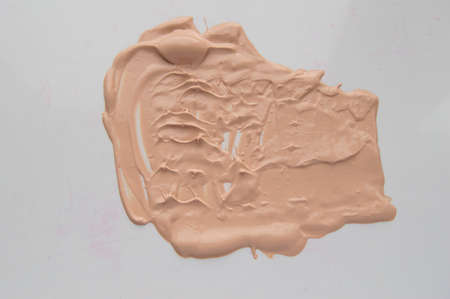 texture of the liquid cream is beige, smears of the cream base on a white background