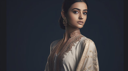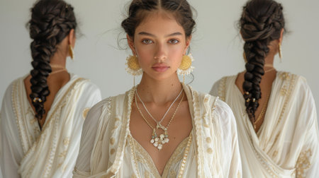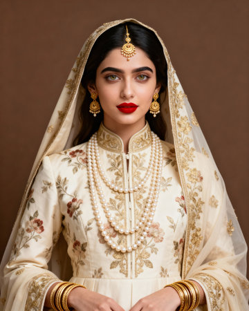 Beautiful South Asian Woman in Traditional Cream and Gold Bridal Attire