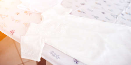 Vintage Ukrainian folk costume. Folk embroidery on the fabric.