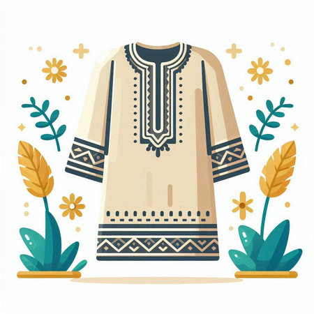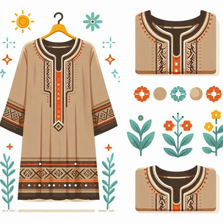 Vector illustration of a set of ethnic clothes with flowers and leaves.