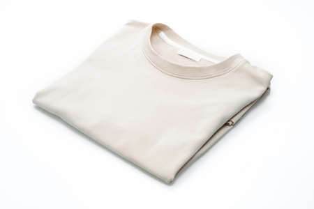 Portrait of a beautiful young woman in a white sweater on a beige background