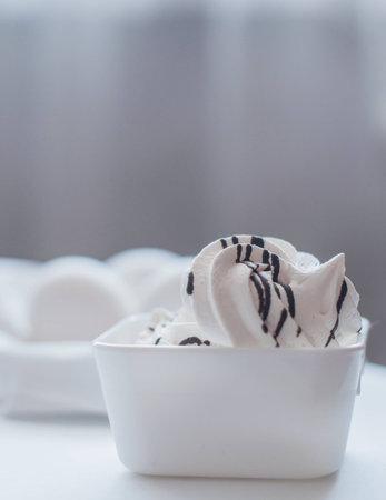AI Generated. Creamy Whipped Topping in a Small Bowl on a Light Surface