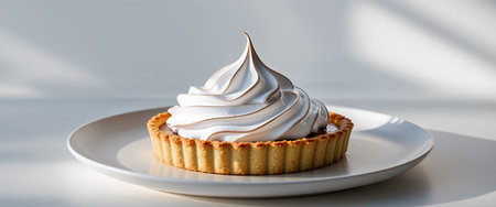 AI Generated. Single Tart with Swirled Meringue Topping on Plate