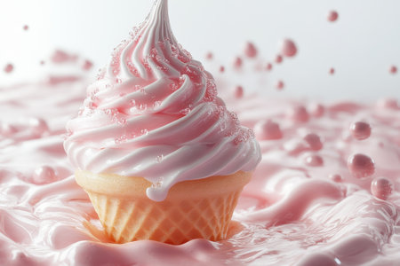 Whipped Cream Explosion on Pastel Pink Background, Sweet Indulgence