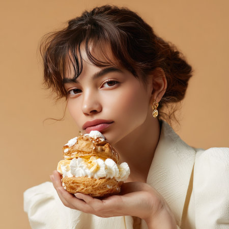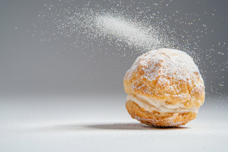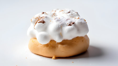 AI Generated. Delicate Cream Puff on Bright White Surface