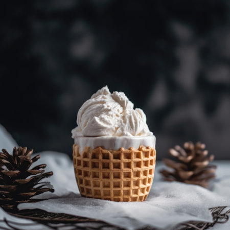 Vanilla frozen yogurt or soft ice cream in waffle cone