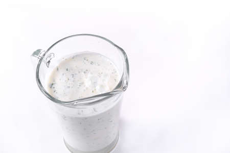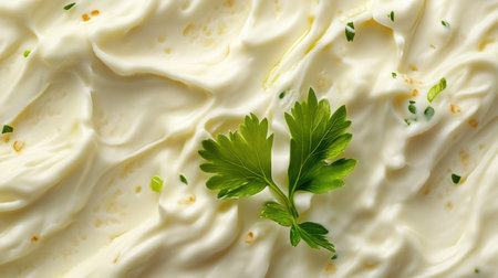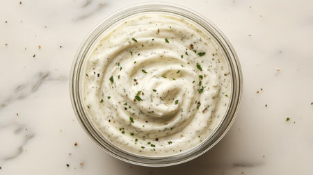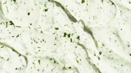 Close-up texture of creamy ranch dressing with fresh herbs for culinary design