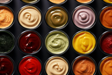 sauces on black background