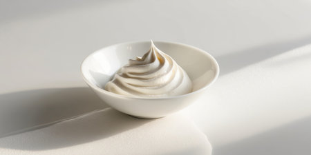 AI Generated. Creamy Whipped Topping in a Small Bowl on a Light Surface
