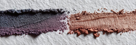 Soft eyeshadow smears and bold eyeliner strokes create an artistic display on textured paper, leaving space for additional creative exploration on the left.