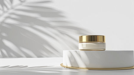 Product presentation, cosmetics brand, lotion, peptide, collagen, hyaluronic acid in white plastic jar. Cream beauty skincare cosmetic mockup showcase, shadow from sun. Minimal template
