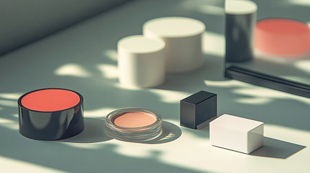 Aesthetic arrangement of various cosmetic containers in different shapes and colors, with soft shadows and a minimalist background, highlighting beauty and elegance, AI generated