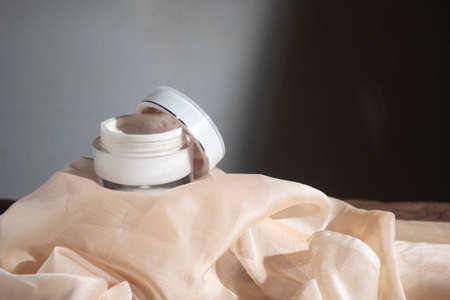 Cosmetic cream in a glass jar. Skin care concept. Background for beauty products