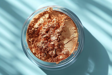 AI Generated. Shimmering Bronze Cosmetic Powder on Light Background for Makeup Use