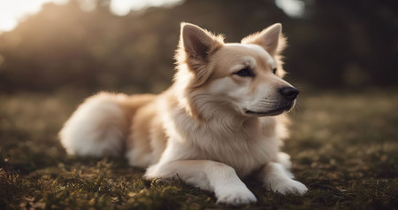 AI Generated. Dog in Soft Light at a Backyard During Afternoon