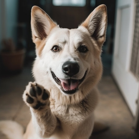 AI Generated. Happy Dog with Bright Smile and Fluffy Fur in Soft Lighting