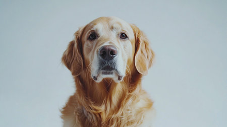 Portrait of a golden retriever dog on a white background.
