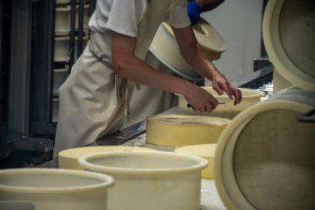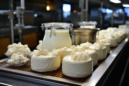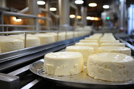 Cutting-edge cheese production at a modern factory, blending technology and precision