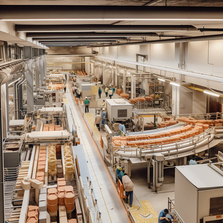 food production facility, with various machines and industrial equipment used to process food, created with generative ai