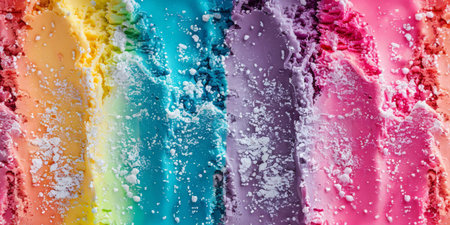 Full frame background of multicolored ice cream for tasty frozen dairy dessert.