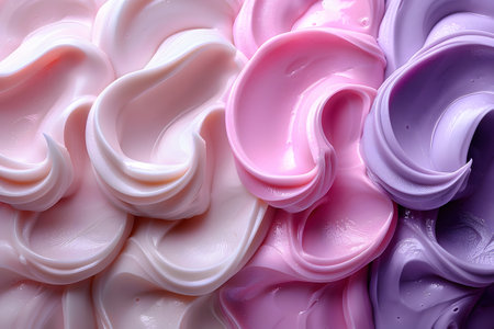 A close-up view of pastel creams in shades of purple, pink, and cream, intricately swirled together to form a smooth, flowing texture. ideal for use in design projects, posters, cards, and various creative applications, soft colors and abstract themes., Generative AI
