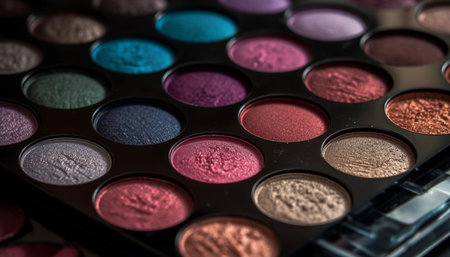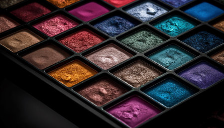 Vibrant colors in a large collection of eye shadow palettes generated by artificial intelligence