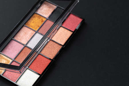 Beautiful make-up eye shadows palette close up. Selective focus.
