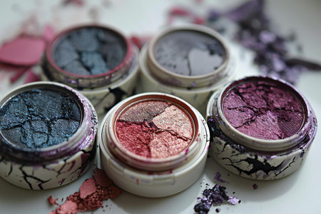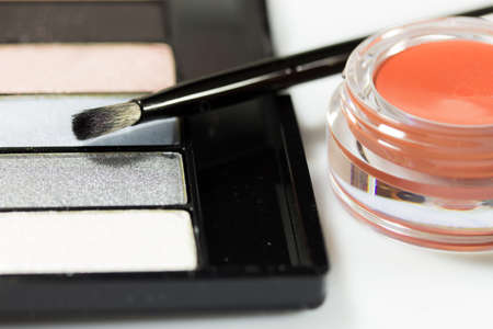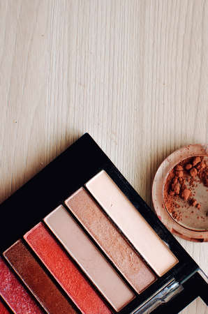 Cosmetic items. Eye shadow. Makeup products. Beauty salon. Beauty and fashion tools. Women's accessories.