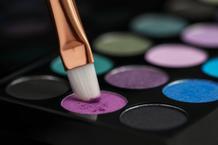 Colorful eyeshadow palette close-up. Cosmetic background. Generative AI