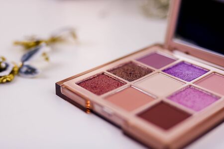 Eye shadow palette on a light background. Photography for advertising design, cover, banner