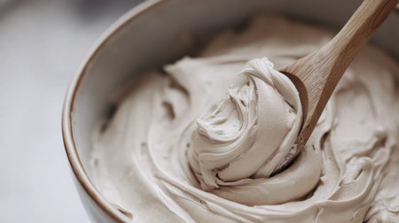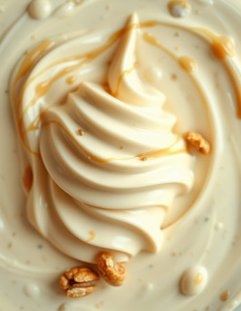 Thick cream with swirling texture showcases smoothness and richness in dairy product