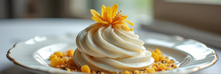 Creamy texture of whipped vanilla confection for food design and culinary art