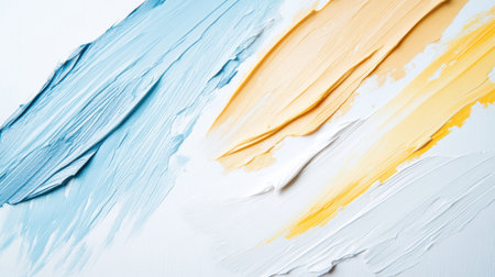Layers of textured paint in soft blue and warm yellow blend seamlessly against a clean white backdrop, creating a captivating abstract visual that inspires creativity and artistic expression.
