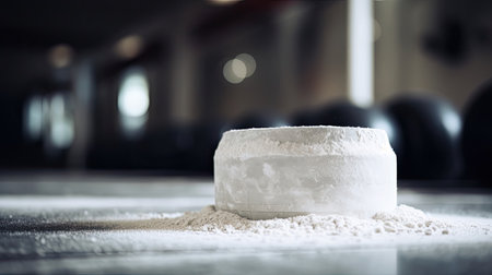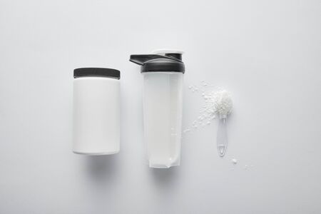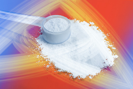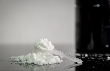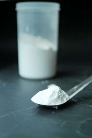 Sport supplement, creatine, hmb, bcaa, amino acid or vitamin mesure with powder. Sport nutrition concept.