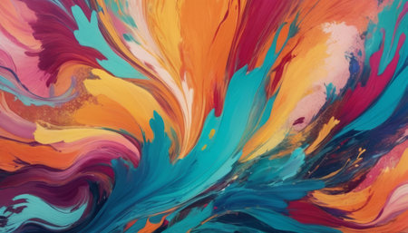 Energetic abstract background with colorful splashes and fluid shapes. Great for adding a lively touch to marketing materials, social media posts, and artistic visuals.