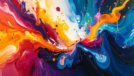 A mesmerizing blend of vibrant colors creates an abstract splash, showcasing energy and creativity. Perfect for modern decor or artistic inspiration.